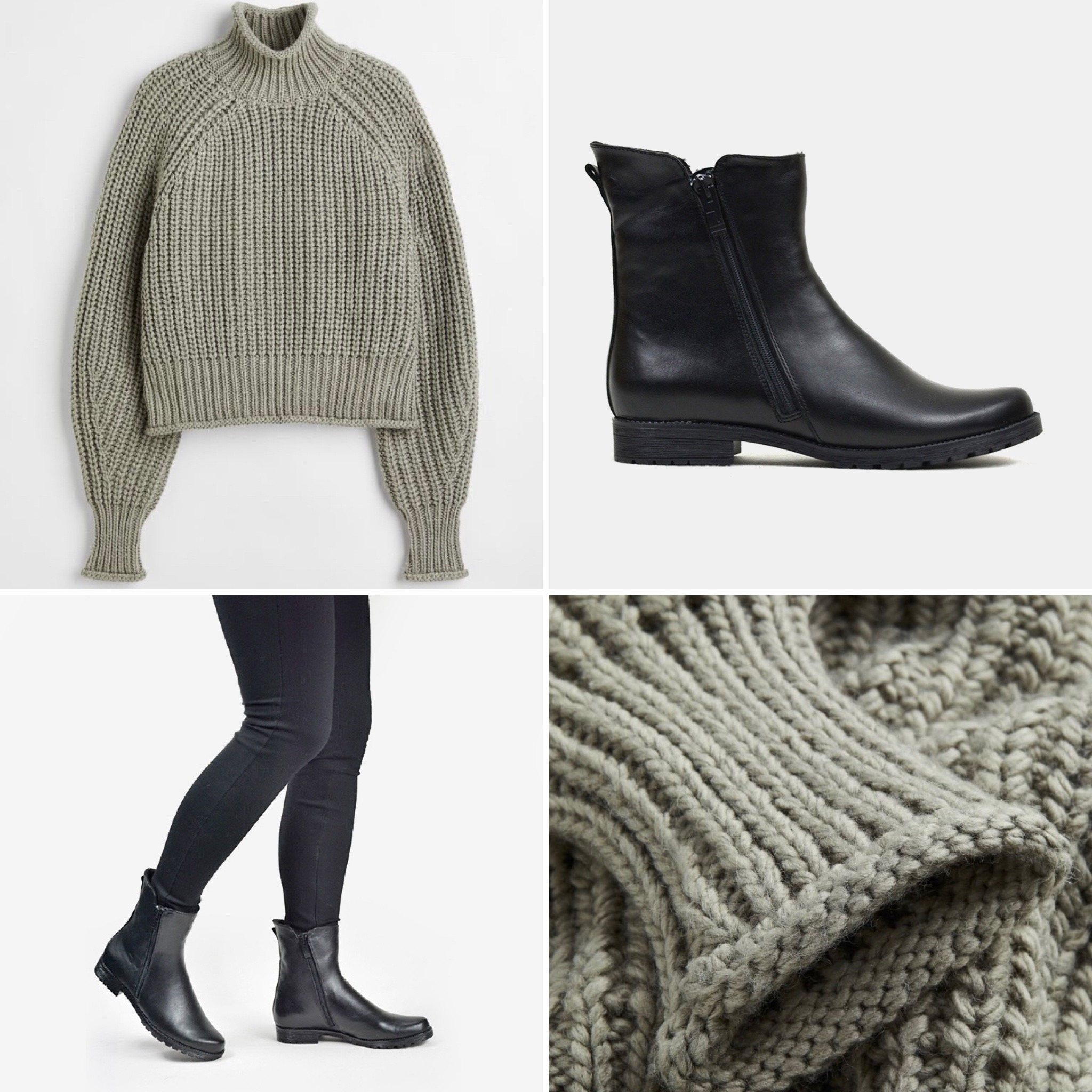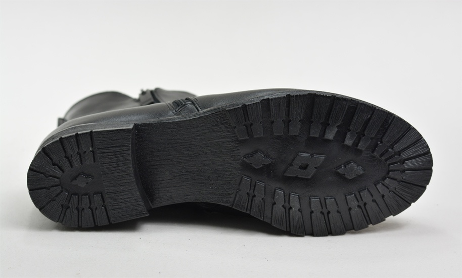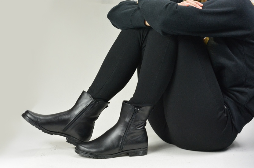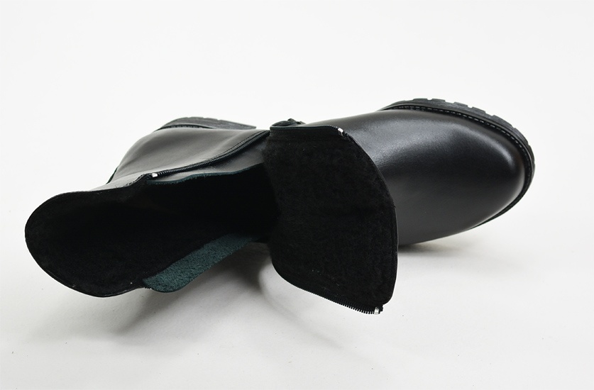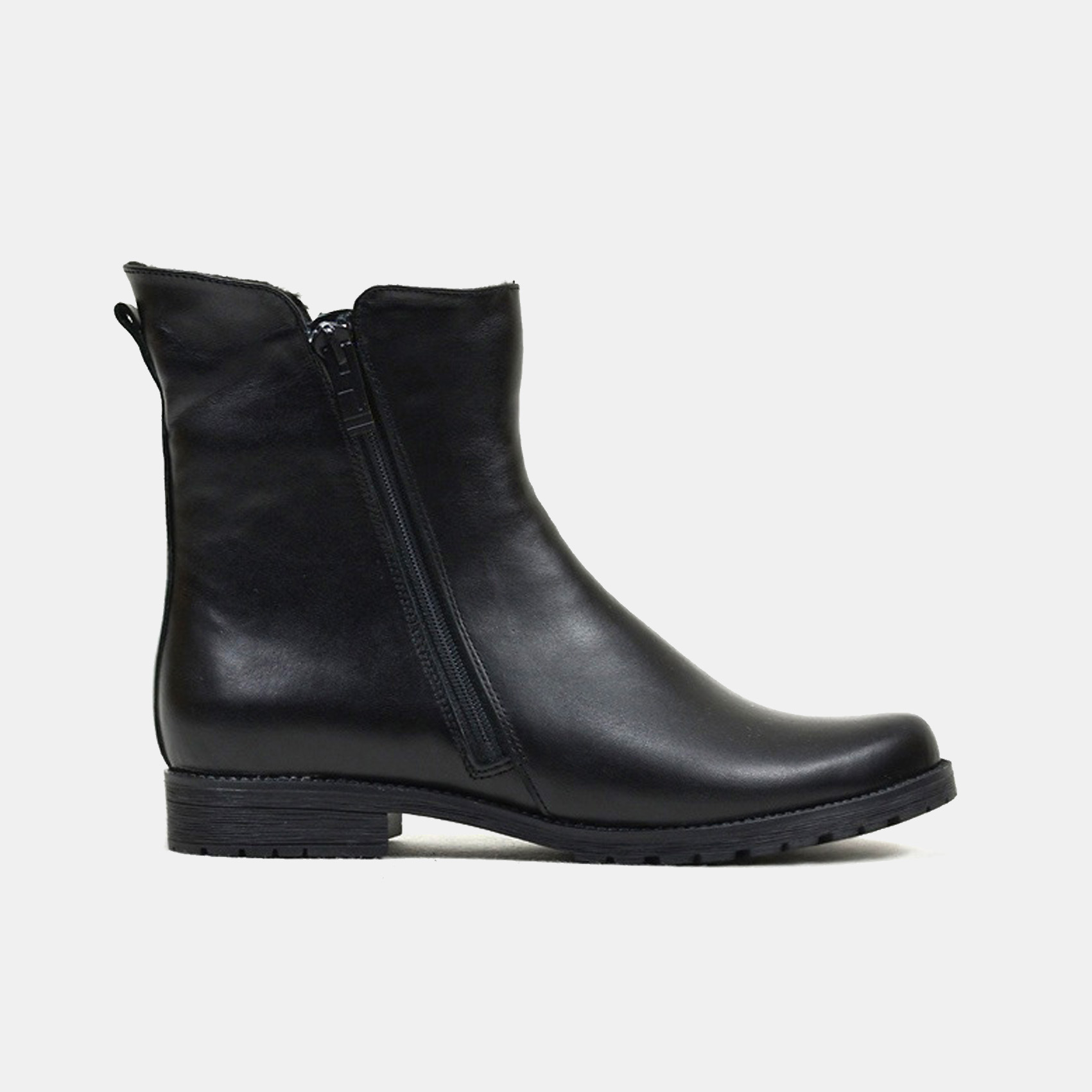 Czarne, ocieplane botki wykonane ze skóry licowej, zapinane na suwak z obu stron.