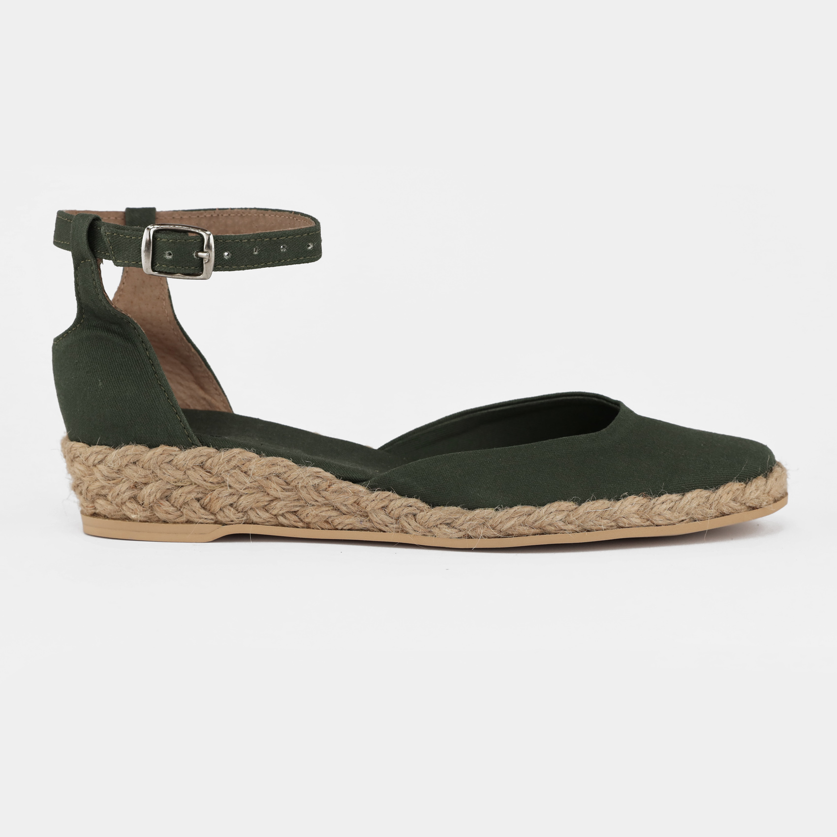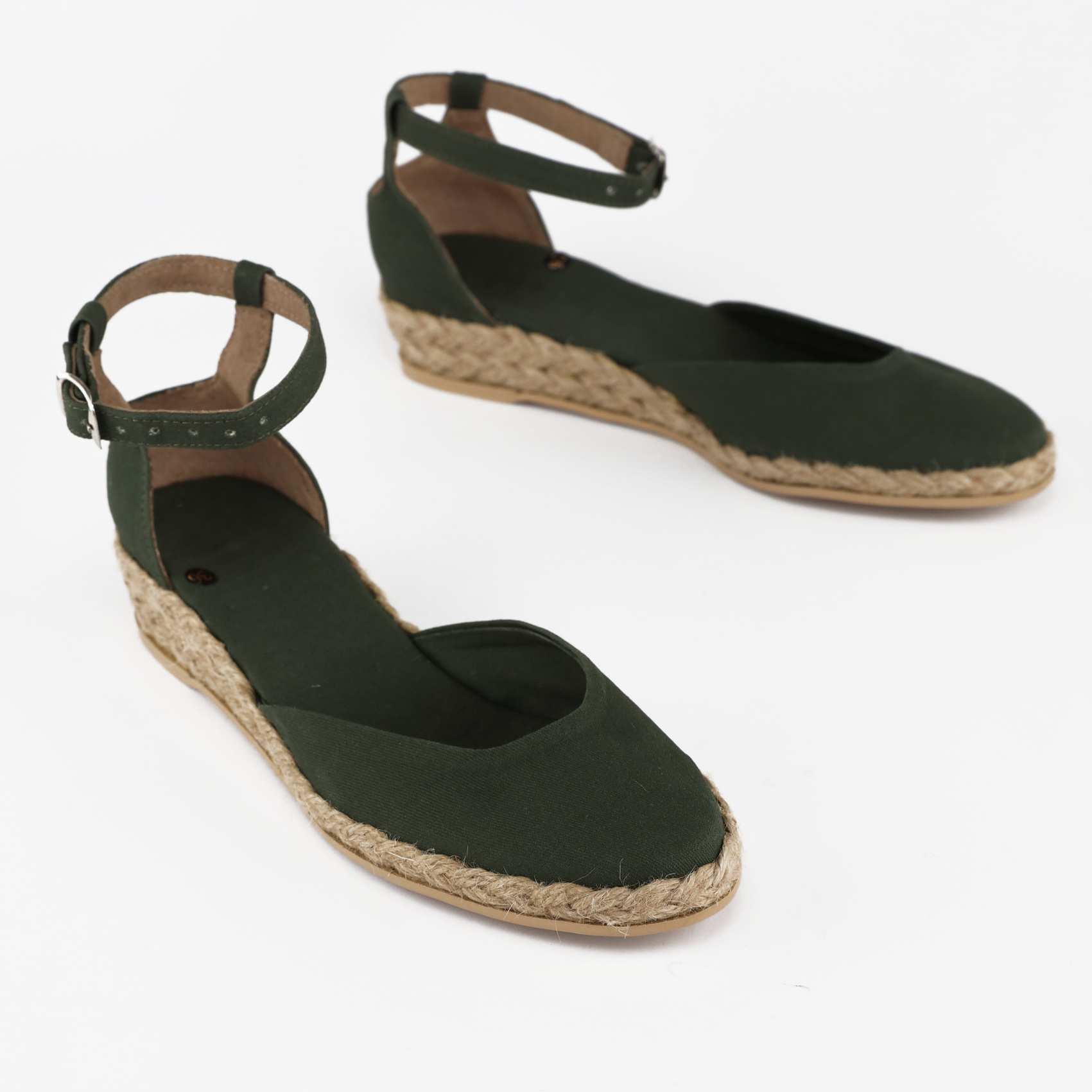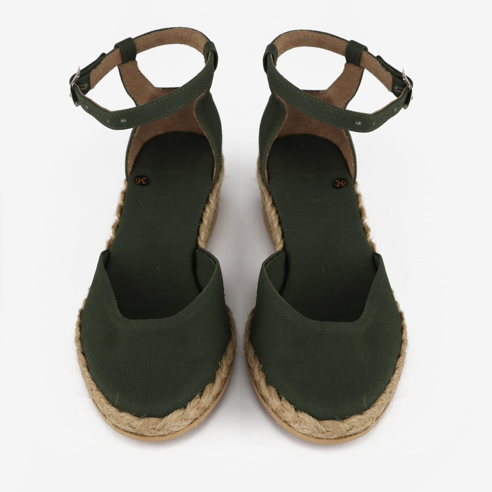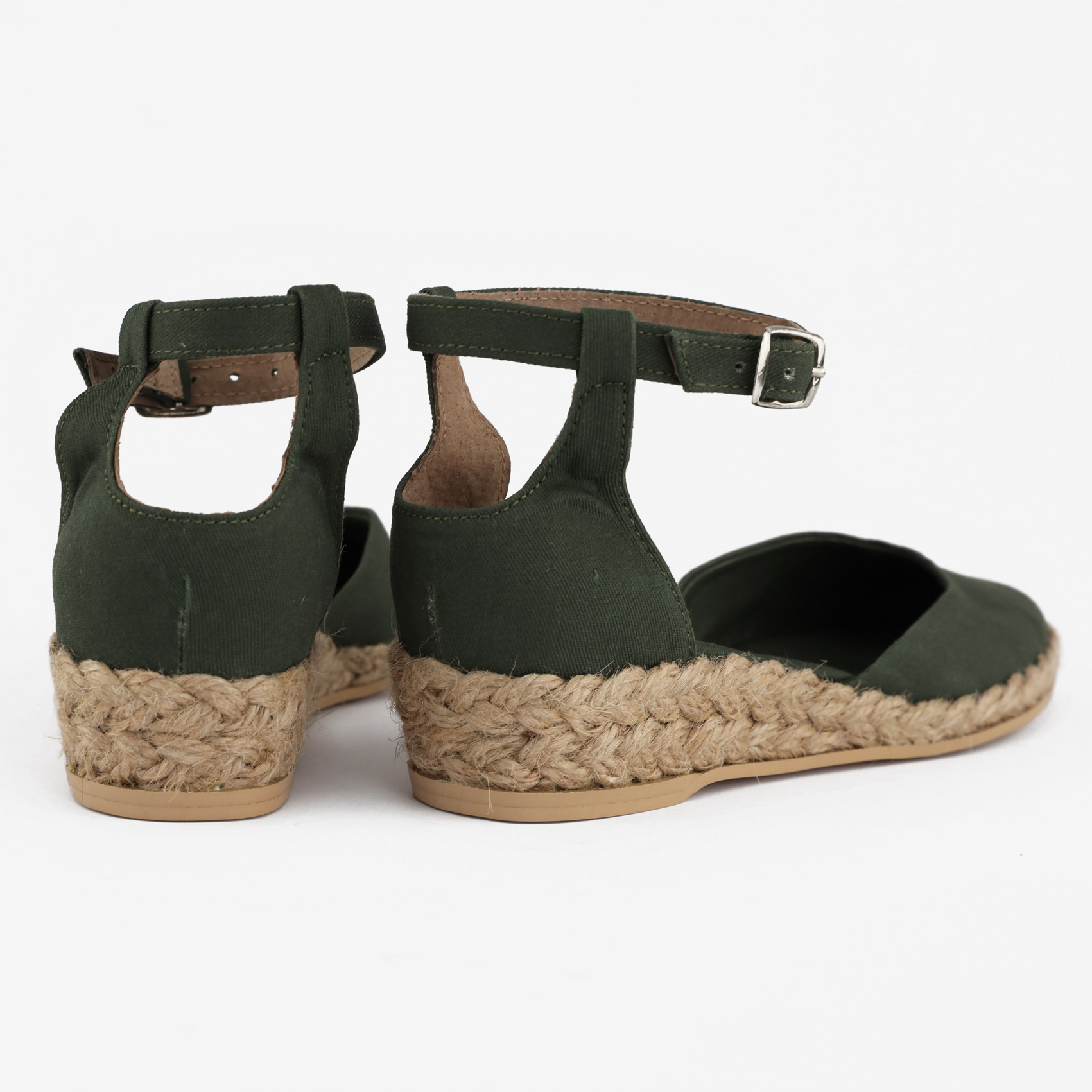 Espadryle khaki płaski koturn zakryta pięta i palce