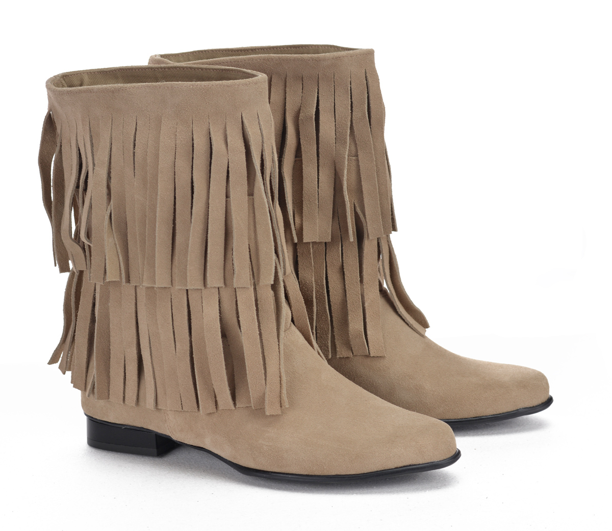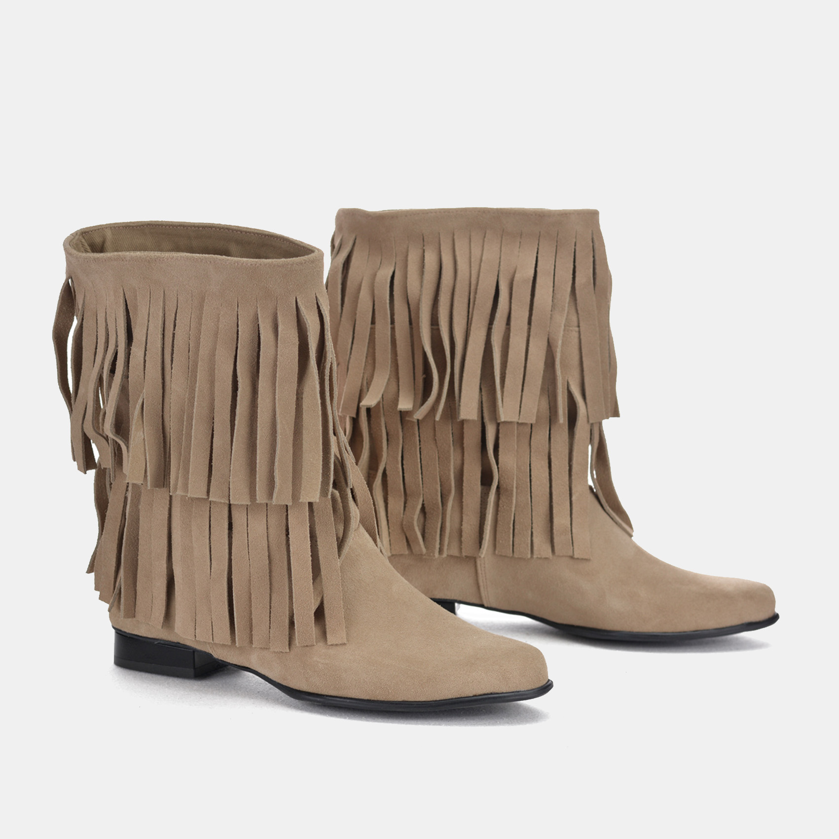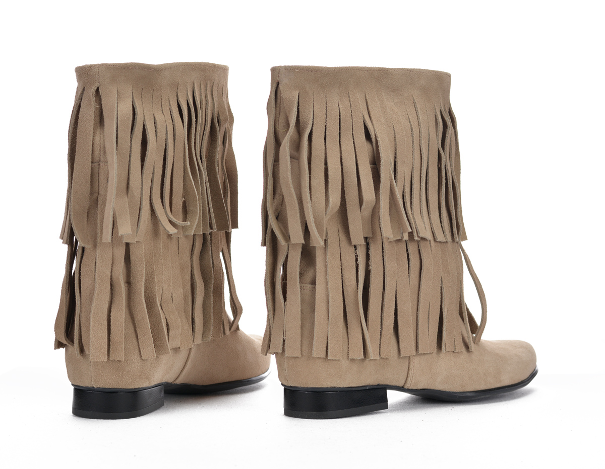Botki Saszki SA/F/Z - zamsz skóra piasek Frędzle