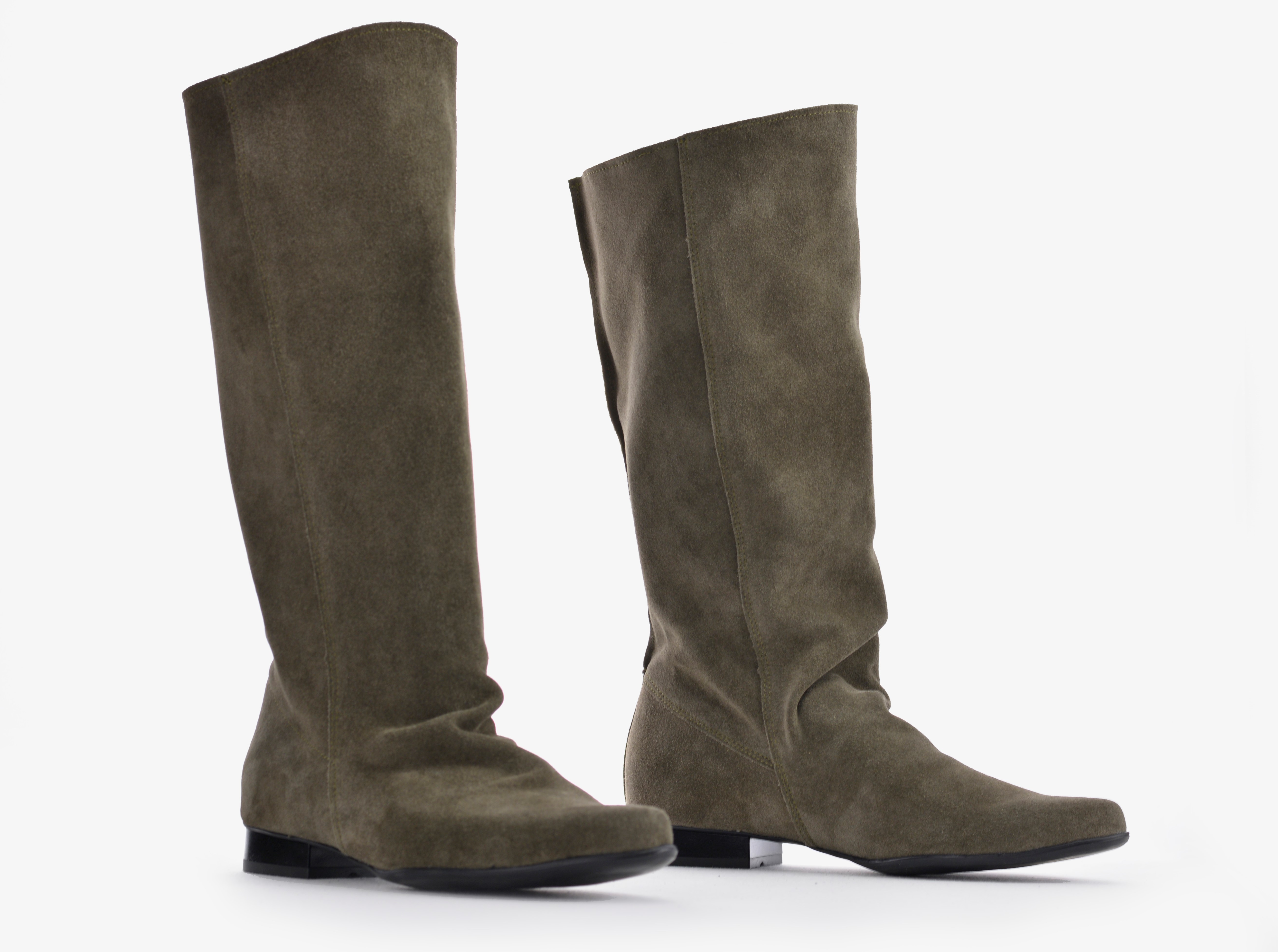 Materiał - skóra naturalna zamsz oliwka ciemna