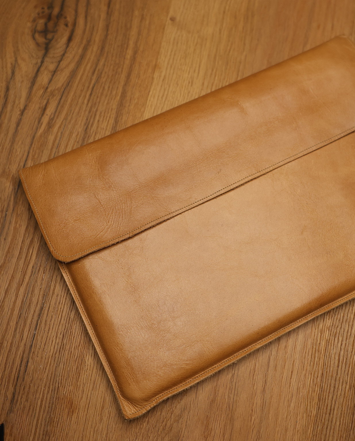 Etui szyte z wysokiej jakości naturalnej skóry. Każdy egzemplarz powstaje na indywidualne zamówienie, dzięki czemu masz pewność perfekcyjnego dopasowania i unikalnego charakteru produktu.